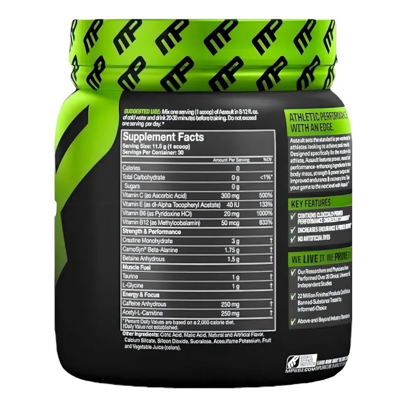 Musclepharm Pre-entrenamiento Assault C/ Creatina Y Beta A /30 Srv Sabor Frambuesa Azul