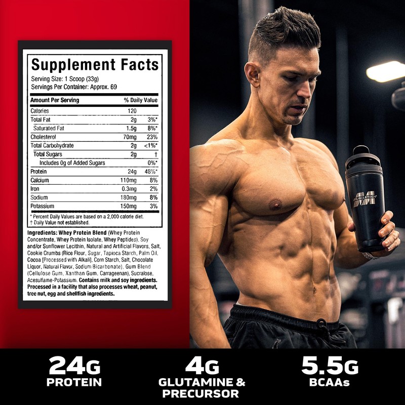 - FAST RECOVERY C MuscleTech Nitro-Tech Whey Gold has 24g of protein, 4g of glutamine & precursor and 5.5g of BCAA for better muscle protein synthesis and recovery