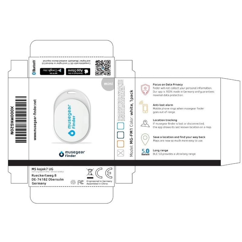 The finder is cheaper than classic key finders. All you need to do is download the app for Android and iOS (musegear finder) and you're ready to go. One-time purchase, no hidden costs, no subscription. Through constant quality control and state-of-the-art technology, we ensure high quality and a top range (up to 50 m outside buildings).