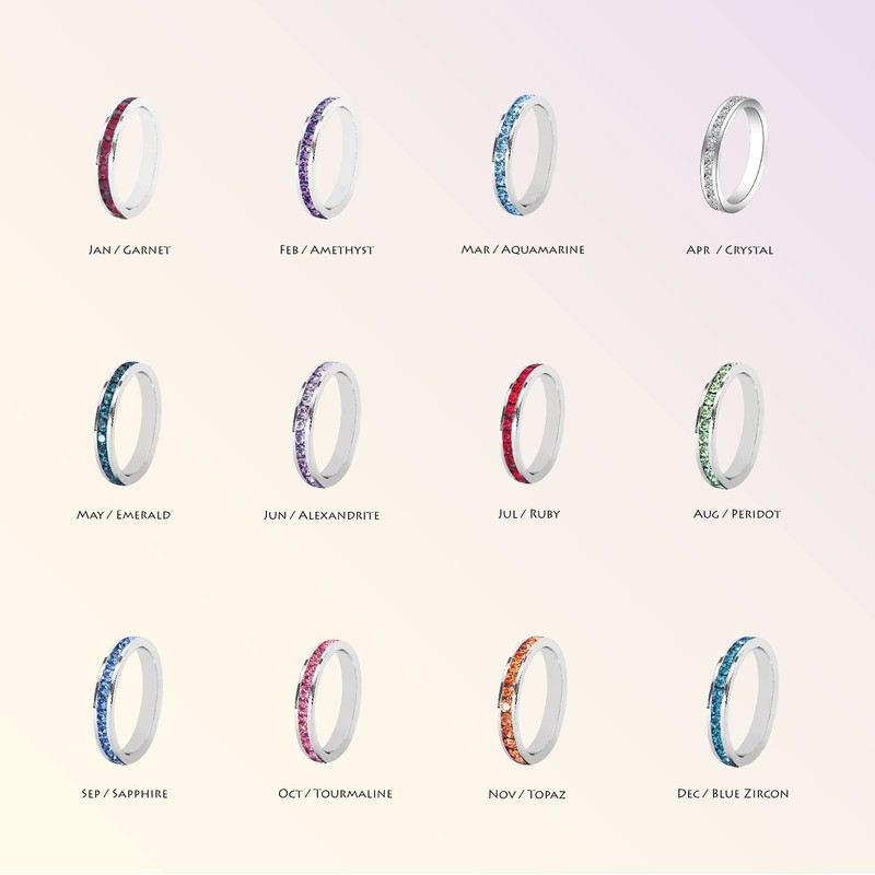 - This band ring is stackable. Combine different colors to create your personal charisma and match your style. In every event, you will be the spotlight. You can wear the birthstone ring each month for luckiness whole year.