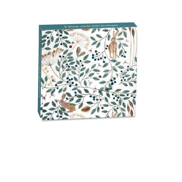 Museums and Galleries V&A Square Mini Notecard Wallet (411736-ERJ) - Hares & Berries by Dee Hardwicke Blank Notes with Envelopes