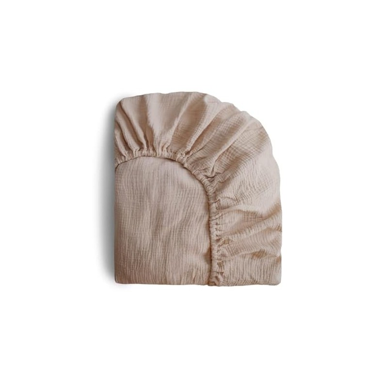 Mushie Muslin Fitted Sheet, Baby and Children Fitted Sheet, 40 x 10 x 100 cm, Breathable 100% Cotton, Safe and High-Quality for Toddlers, Children, Boys and Girls (Natural Small)
