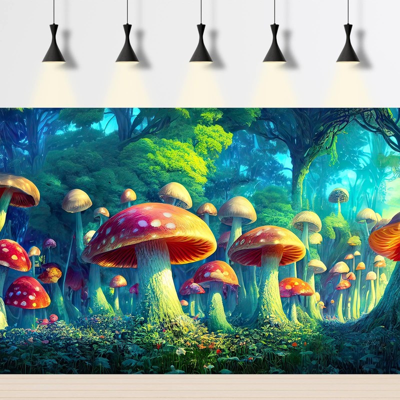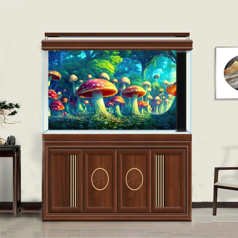 Mushroom Aquarium Background Green Forest Fantasy Glowing Mushrooms Terrarium Background Cartoon Mushroom Reptile Habitat Background Surrealism Colorful Mushroom Fish Tank Background 48x18in