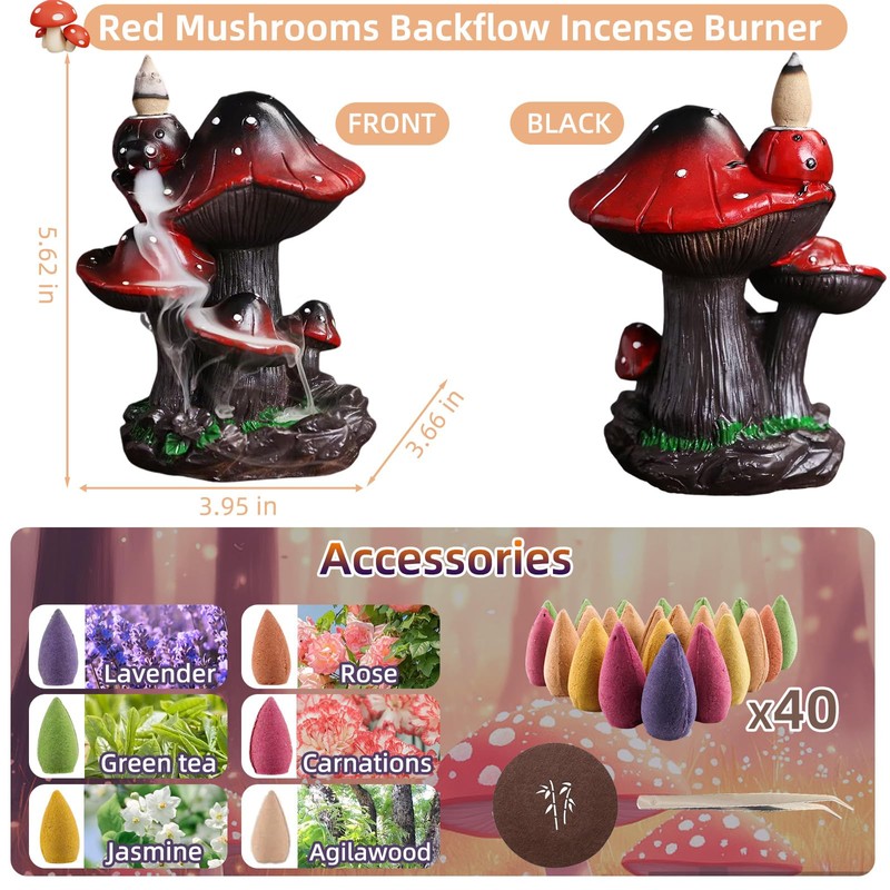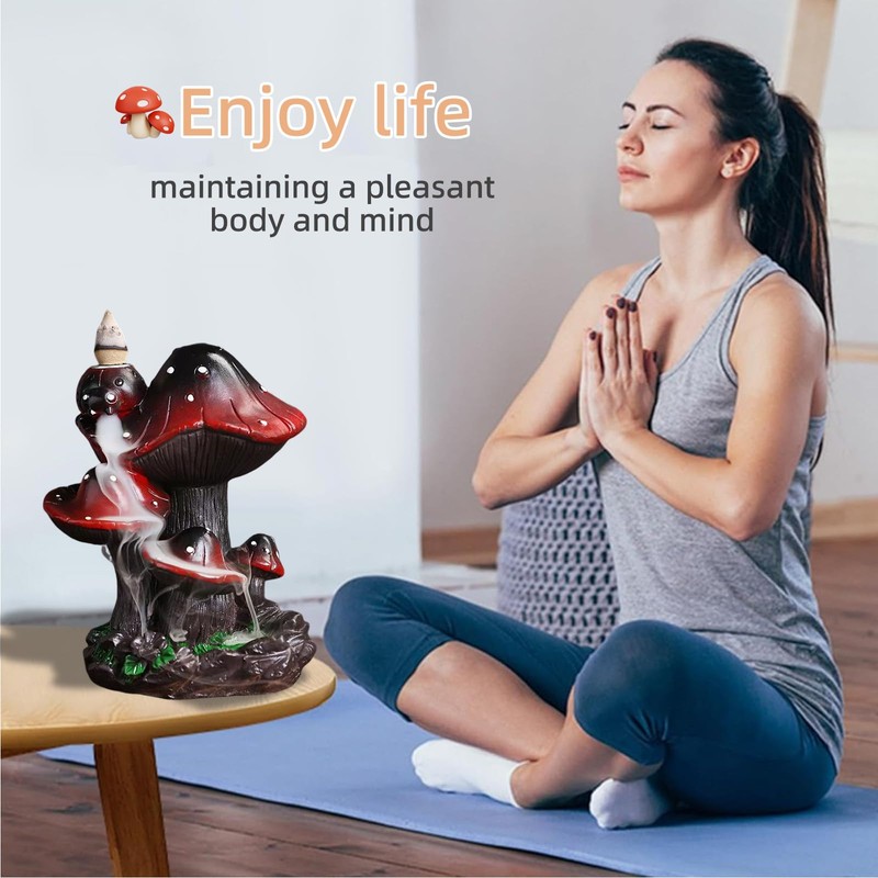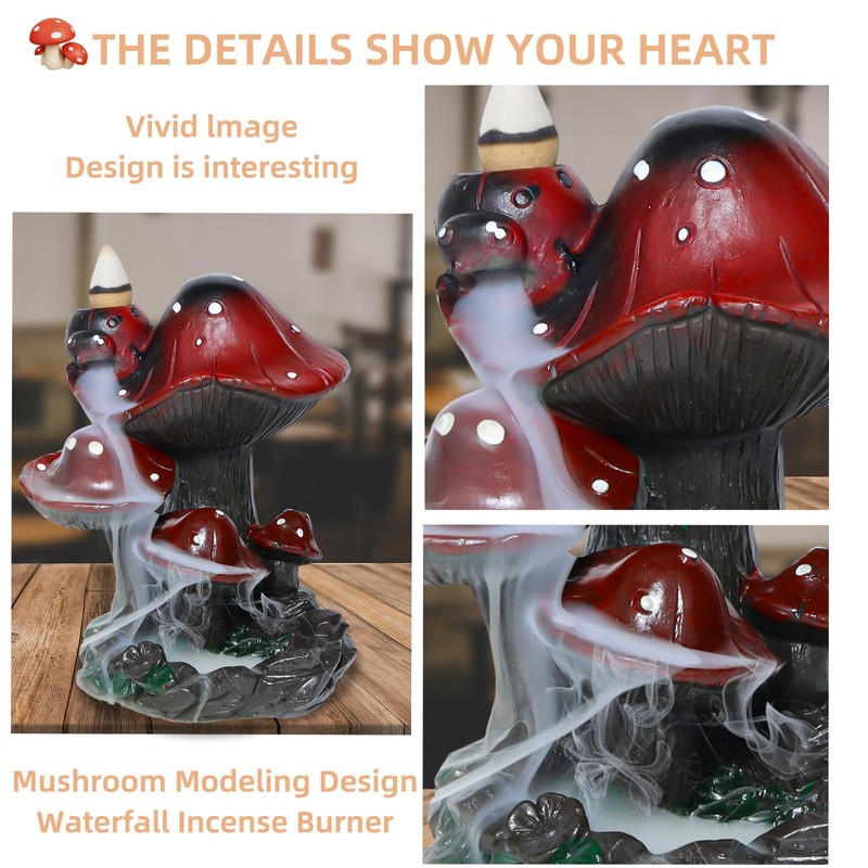 - Stunning Backflow Incense Burner: Our Mushroom Backflow Incense Holder features a unique backflow design that creates a mesmerizing smoke waterfall effect. Watch as the smoke gently cascades downwards, enhancing the ambiance of any room with its calming and enchanting appearance.