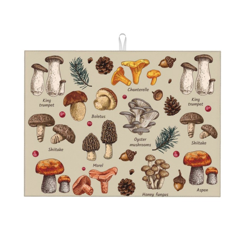 Mushroom Dish Drying Mats For Kitchen Counter XL Microfiber Kitchen Drying Mat Large Draining Pad Absorbent Quick Drying Dish Mat 18x24 Inch