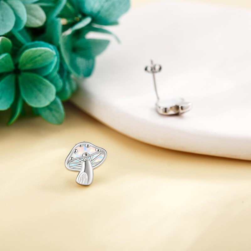 Mushroom Earrings S925 Sterling Silver Opal Mushroom Stud Earrings Cute Mushroom Jewellery for Women