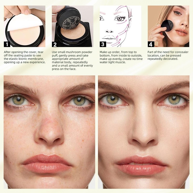 - 【Plant Skin Care Ingredients】The mushroom head air cushion cc cream Contains a variety of natural skin care ingredients, such as Centella asiatica extract, Tremella extract, vitamin E, etc. While applying makeup, it also balances sebum levels, reduces acne, spots, fine lines, and nourishes the skin.