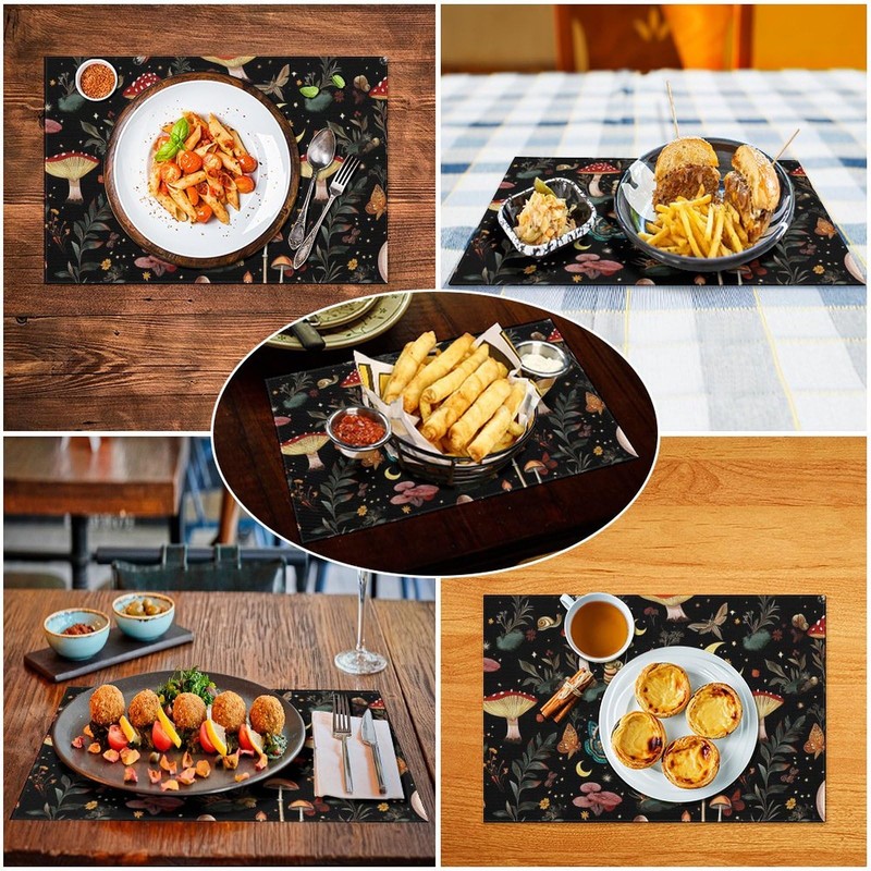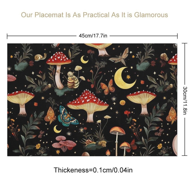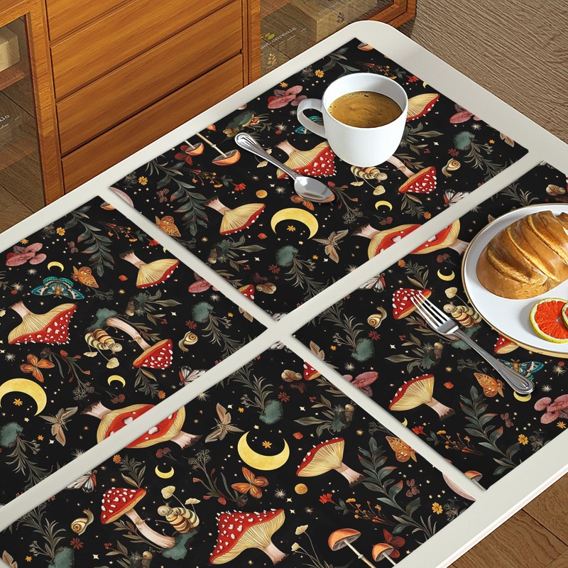 Mushroom Marble Placemats Set of 4, 12x18 Inch Moth Gothic Witchy Table Mats for Party Kitchen Dining Decoration