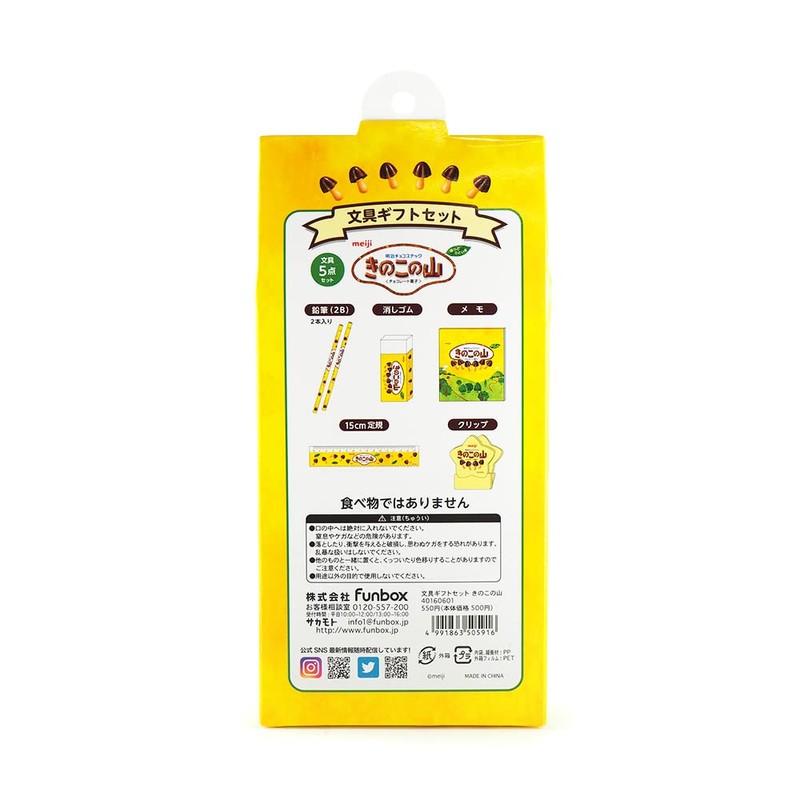 - The box is a vibrant yellow color and features Meiji popular "Mushroom Mountain" design