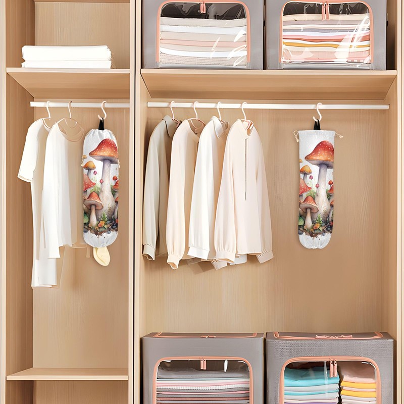 Mushroom Plastic Bag Holder, Reusable Grocery Bag Holder Wall Mount Plastic Bag Organizer Washable Shopping Bags Carrier for Home Kitchen, 2 Pack