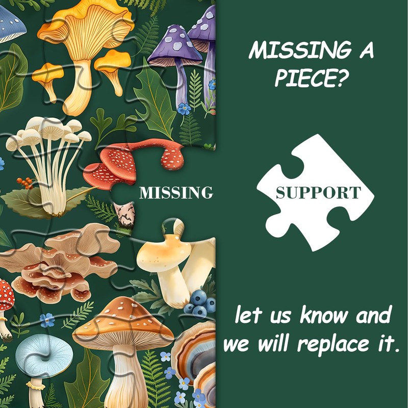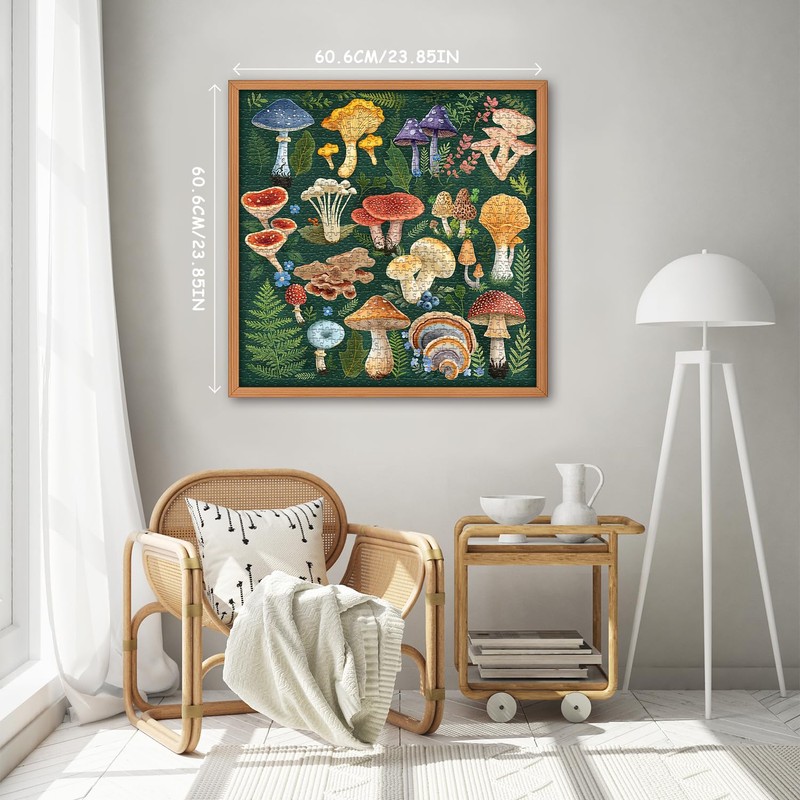 - Mushroom puzzle 1000 pieces: Size: 23.85*23.85 inches/60.6*60.6 cm, puzzles for adults 1000 pieces nature including storage box and high-definition poster, help you easily master the progress of the puzzle and enhance your puzzle experience