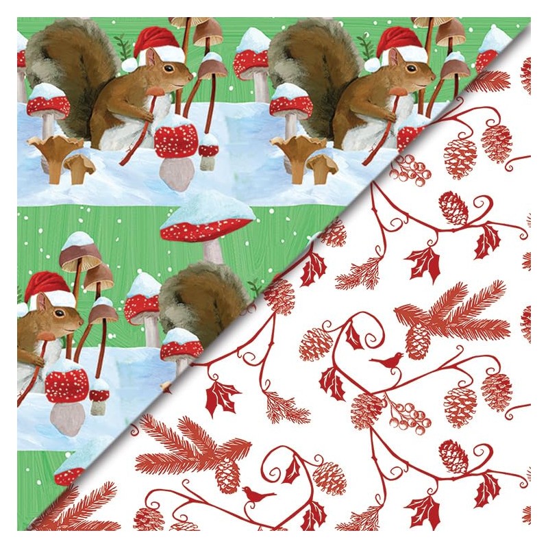 Mushroom Squirrel - Reversible Holiday Wrapping Paper - Eco Gift Wrap Allport Editions x Wrappily