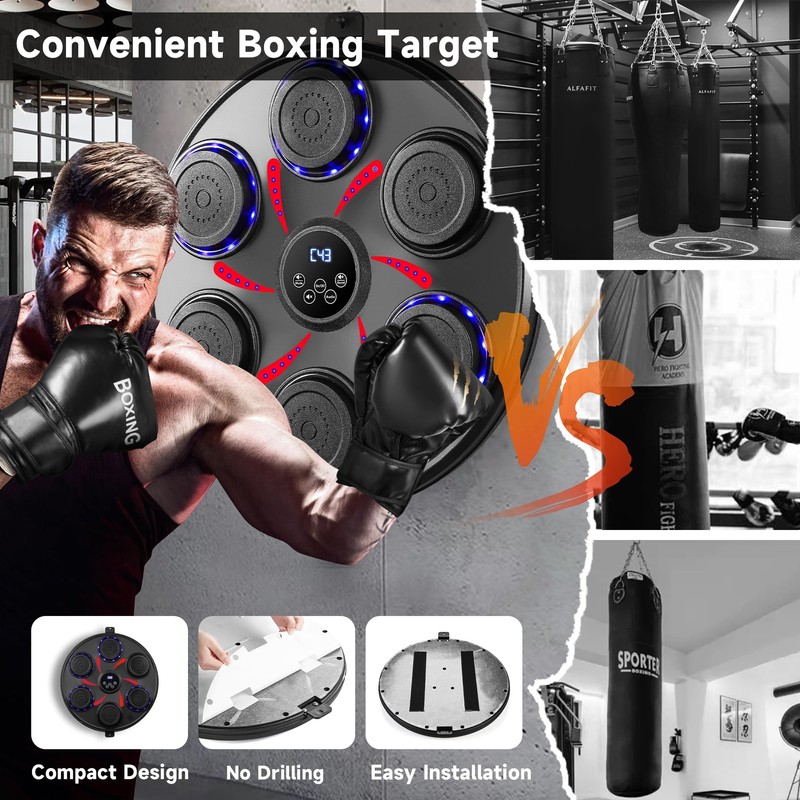 - Professional Music Boxing Machine(Boxing Gloves Included):Elevate your workout with our professional music boxing machine, featuring 𝟗 modes & 𝟗 speeds to meet diverse training needs. When the target lights up and you hit it, your performance is instantly tracked. Perfect for professional boxers, fitness enthusiasts, and daily exercisers, this machine enhances reaction speed and body coordination. Ideal for everyone from children and teenagers to office workers and weight loss seekers.