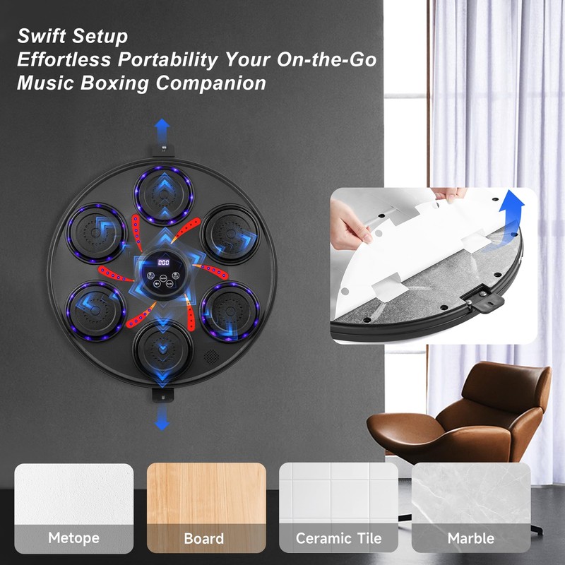 - High-Elastic Foam Impact Surface:Train with confidence on our high-elastic foam impact surface, designed for optimal rebound and shock absorption. Experience authentic boxing sensations while protecting your hands from impact. The sleek, easy-to-clean design ensures durability and style, making this music boxing machine a perfect addition to any space.