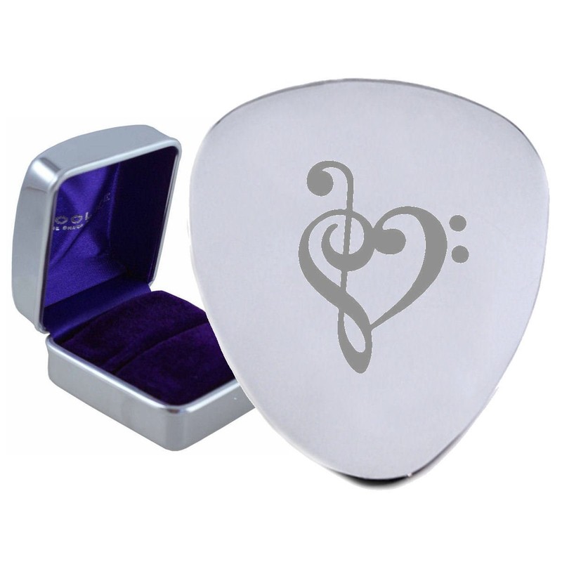 Music Heart Valentine Steel Guitar Plectrum Pick Engraved in Box