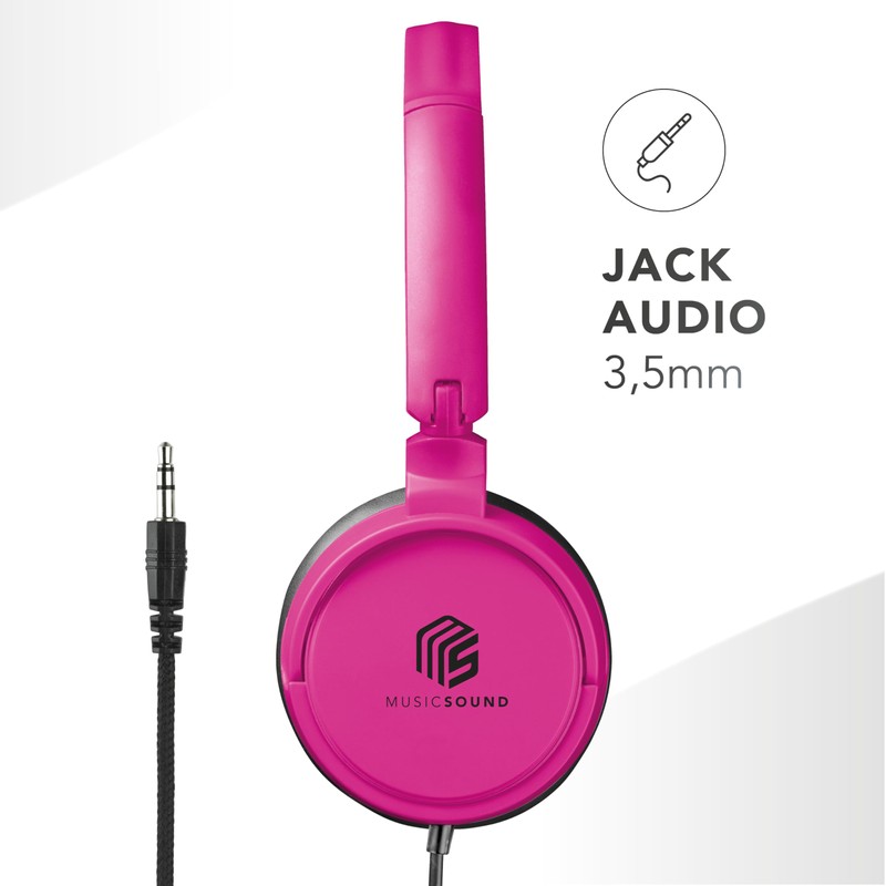 Music Sound Over Ear Wired Headphones Basic On-Ear Headphones Foldable Headband with 1.2 m Anti-Tangle Cable and Built-in Microphone 3.5 mm Jack - Colour Pink, MUSICSOUNDFULLCP