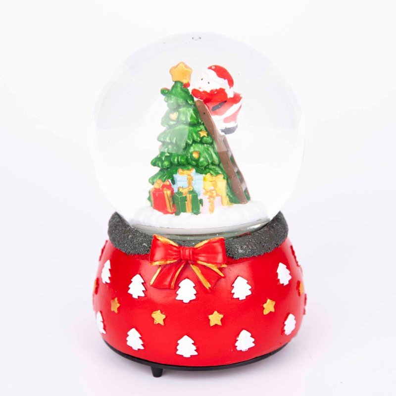 Musical Christmas Snowglobe Large Water Ball Features Christmas Santa On Tree Scene Cute Resin Base- 10x15cm - Christmas Table Mantel Decorations