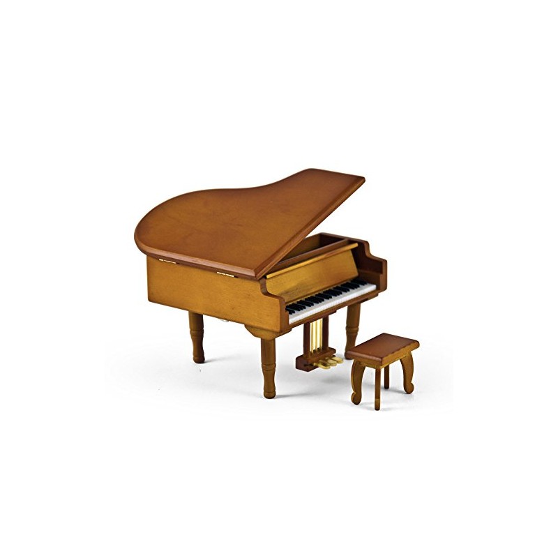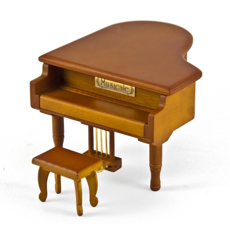 MusicBoxAttic Incredible Wood Tone Miniature Replica of A Baby Grand Piano with Bench - Many Songs to Choose - Zip A Dee Doo Dan