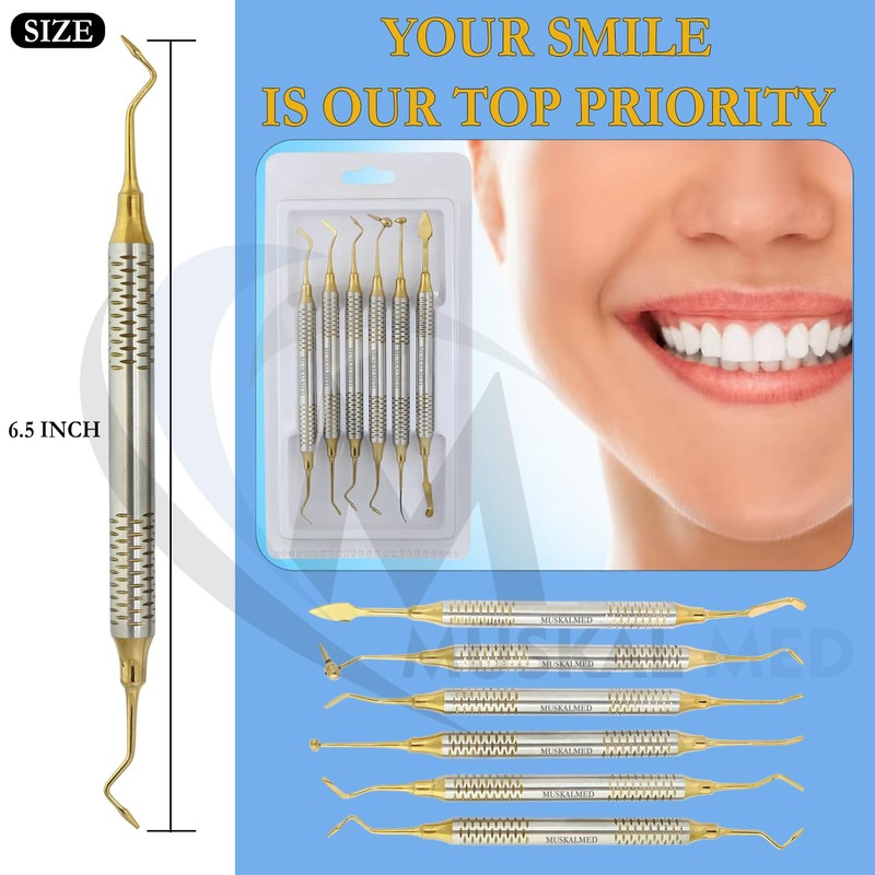 MuskalMed 6 Pcs Dental Instrument Composite Resin Filling Spatula Gold Titani...