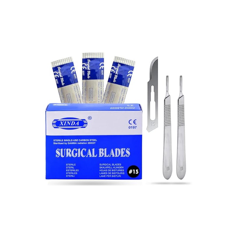 • ✔️ MuskalMed Pack of 100 Blades #15, Scalpel Blades for Knife Scalpel, High Carbon Steel Dermablade Blades. Individually Wrapped, Sterile + Free 2 Handle #3