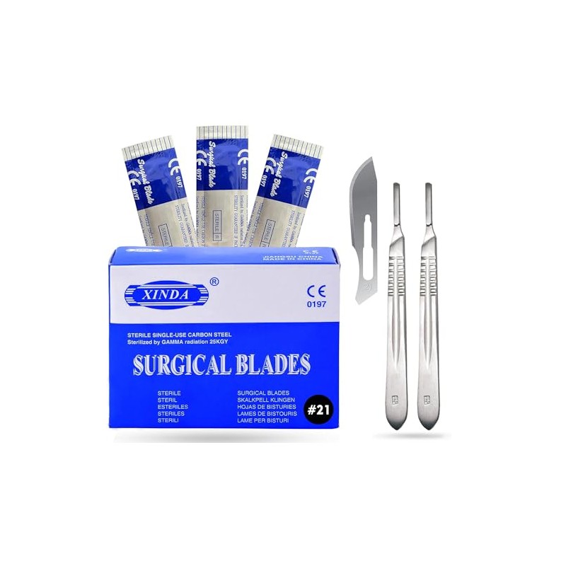 - ✔️ MuskalMed Pack of 100 Blades #21, Scalpel Blades for Knife Scalpel, High Carbon Steel Dermablade Blades. Individually Wrapped, Sterile + Free 2 Handle #4