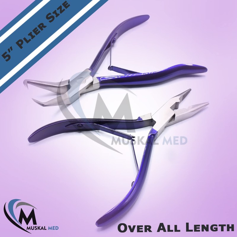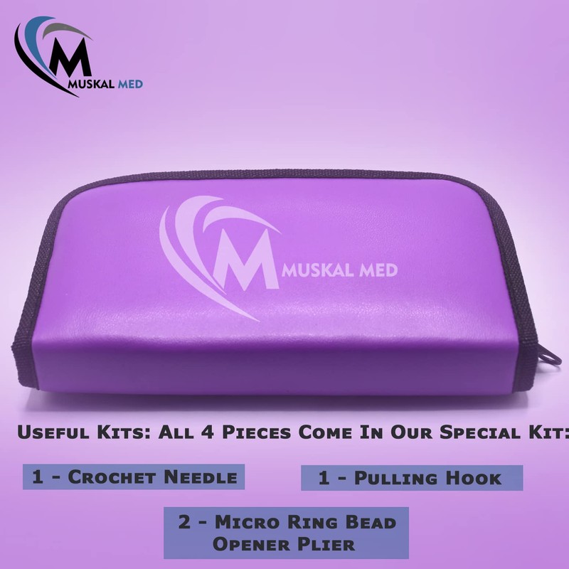 MuskalMed Professional Hair Extension & Beading Tool Kit Remove Plier Set for beads (4 Piece) I-Link Micro Ring Loop Needle Pulling Hook Threader Wire for Silicone Rings (Purple)