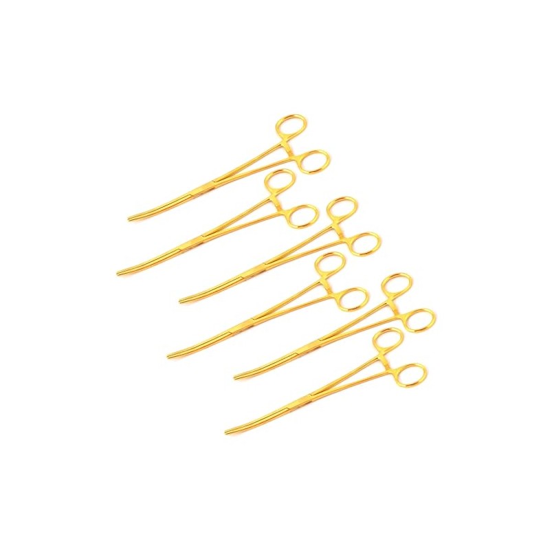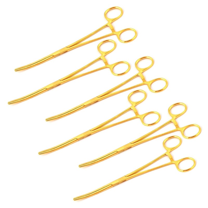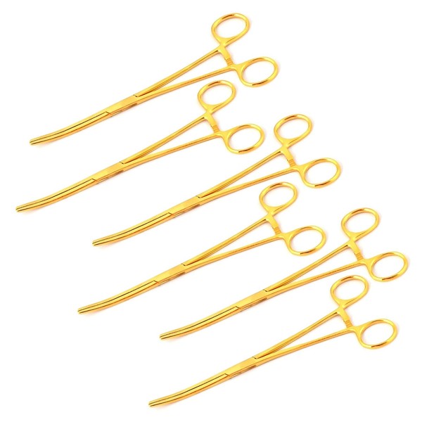 MuskalMed Set of 6 8" Long Gold Color Curved Hemostat Forceps - Stainless Steel Locking Tweezer Clamps - Ideal Hemostats for Nurses, Fishing Forceps, Crafts and Hobby,