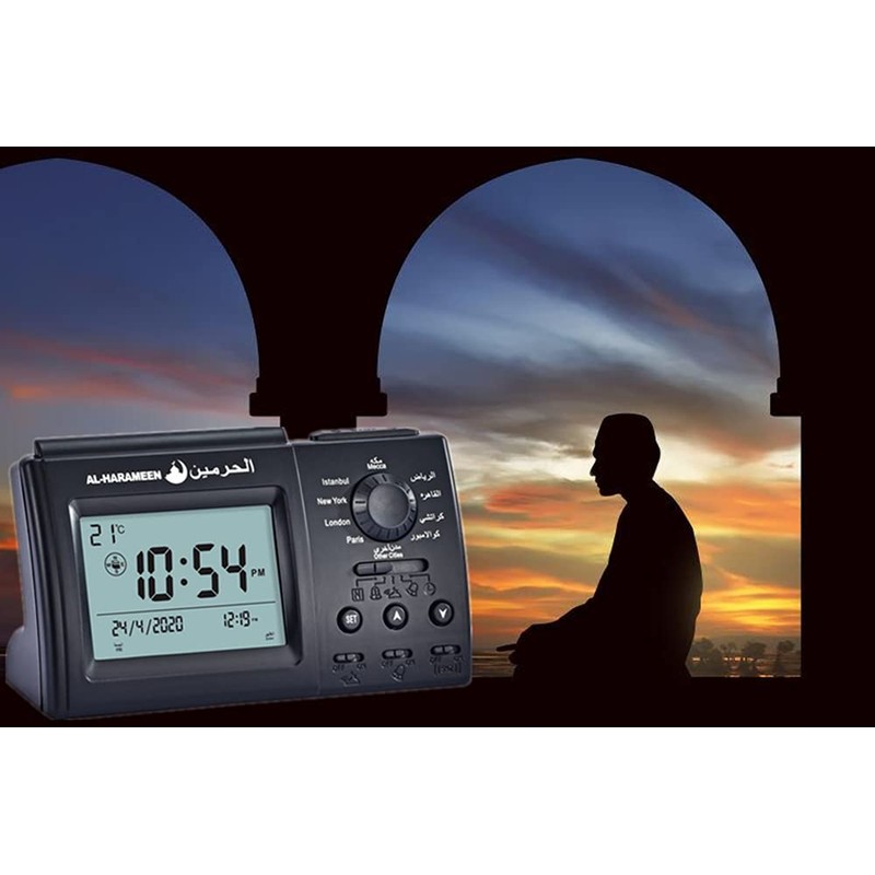 Muslim Azan Table Clock,Azan Athan Prayer Clock Black Color Complete Azan for All Prayers Qibla Direction HPUK-3006