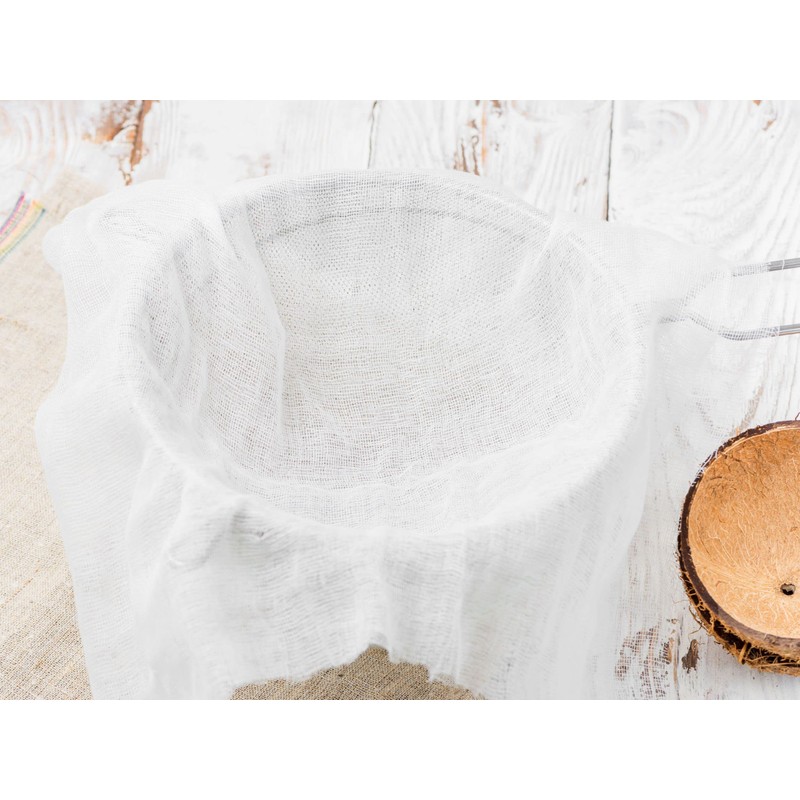 - The cloth measures 180cm x 90cm, providing a generous filtering surface area which can be cut or folded to size if required. A must have kitchen assessor for your home-made recipes.