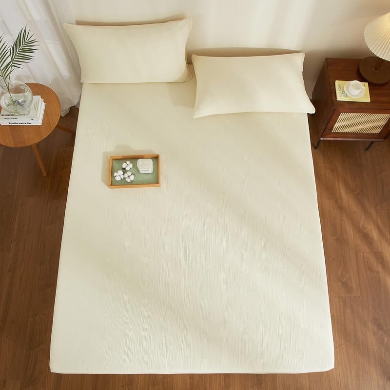 - 🌸SOFT TEXTURE Our double muslin fitted sheet (without pillowcase) is made of 100% selected natural vegetable muslin cotton. Our materials are more comfortable, durable and easy to clean. Double muslin is carefully woven into a soft, silky texture that is breathable, cool and comfortable. Certified according to Oeko-Tex Standard 100, safe and free from harmful substances.
