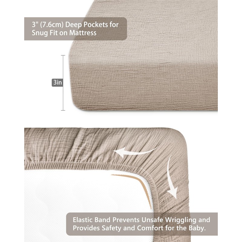 - 100% Muslin Cotton - Our pack n play sheet is made of 100% muslin cotton, with a smooth surface and comfortable touch, features a light drapability and rigidity, suitable for your baby's delicate skin, and let your little one have a better sleep.