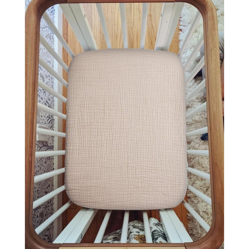 Muslin Pack and Play Sheets for Baby Boys and Girls 39"x27"x3", Neutral Muslin Cotton Pack N Play Mattresses Sheet with Boho Style, Soft and Breathable Comfort (Beige, Pack and Play Sheet)