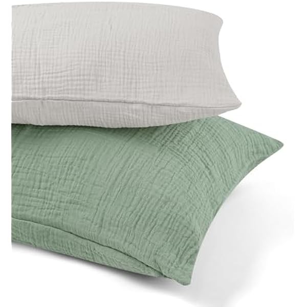 Muslin Toddler Pillowcase for 13 X 18 Pillow, 2 Pack Small Travel Pillow Cases Covers with Envelope Closure, Soft & Breathable Kids Pillowcase for Girls Boys, Grey & Green