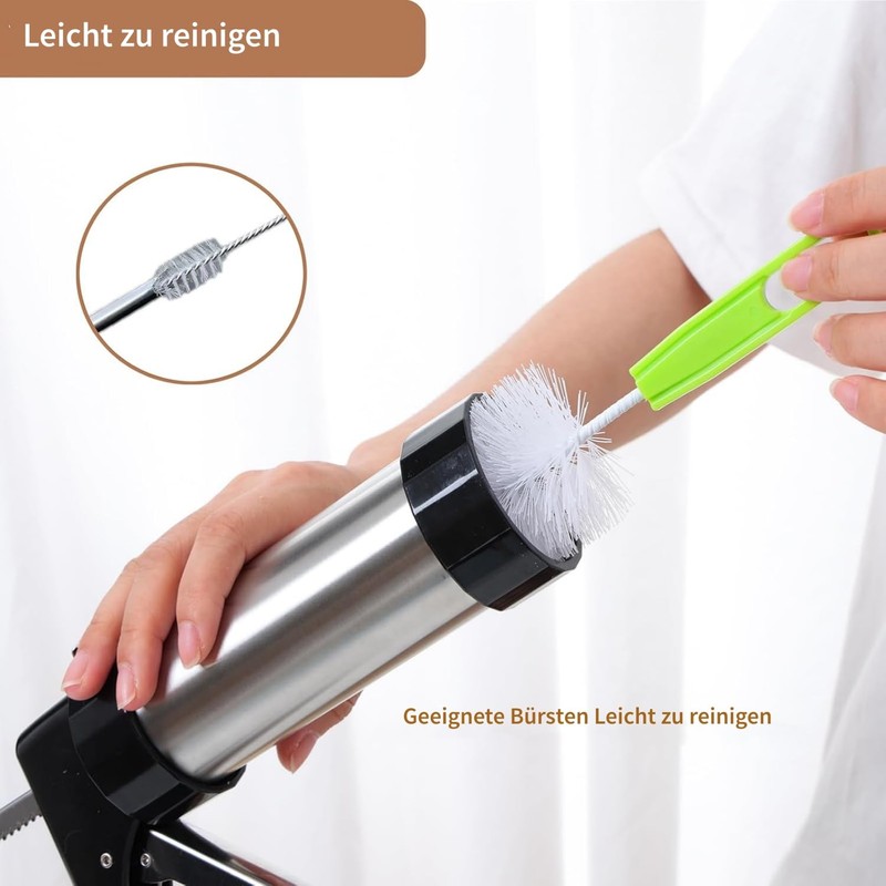 • ✔ Churros maker set in premium quality – Our Churros machine is made of thickened stainless steel and is very robust. The filler neck is durable and has no leakage. Our churros machine is made of thick stainless steel and is durable. The piping bag is durable and leak-free. Create authentic Mexican churros with this churro machine with three stainless steel nozzles for easy homemade churros.