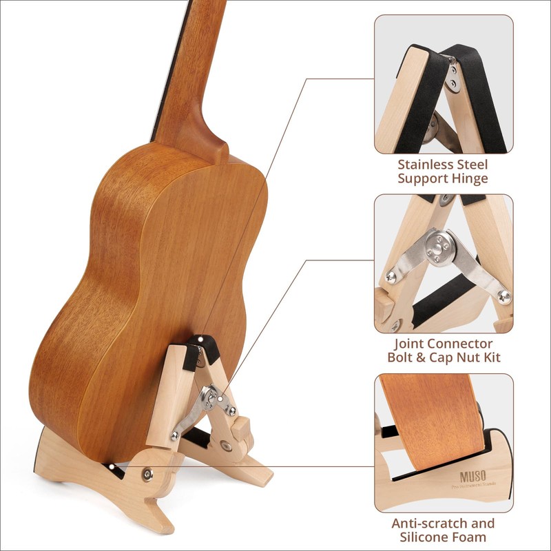 MUSO Mini Violin Ukulele Stand, Premium Solid Wood, Table Desk Stand, Lightweight&Stylish Holder for Violin,Ukulele Mandolin and Banjo (hard maple)