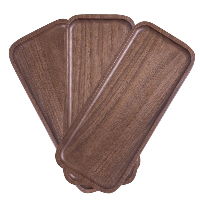 Muso Wood Solid Walnut Wood Serving Trays, Rectangular Wooden Serving Plates for Home Decor, Food, Cheese, Appetizer Serving Tray, Coffee Tray (Set of 3)