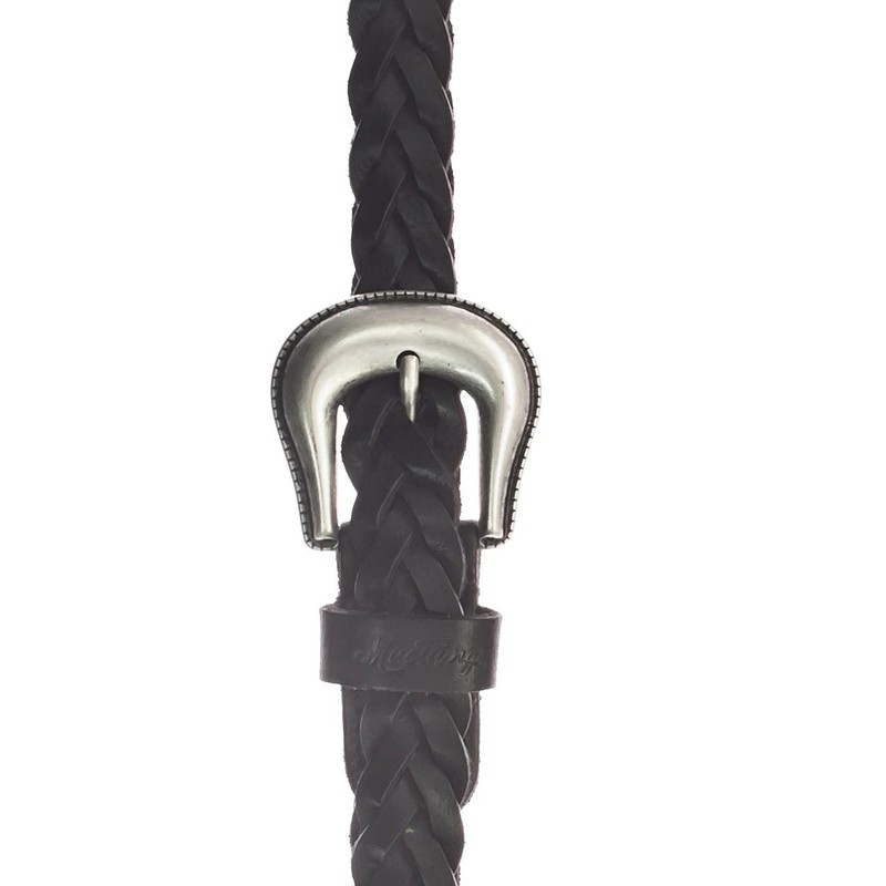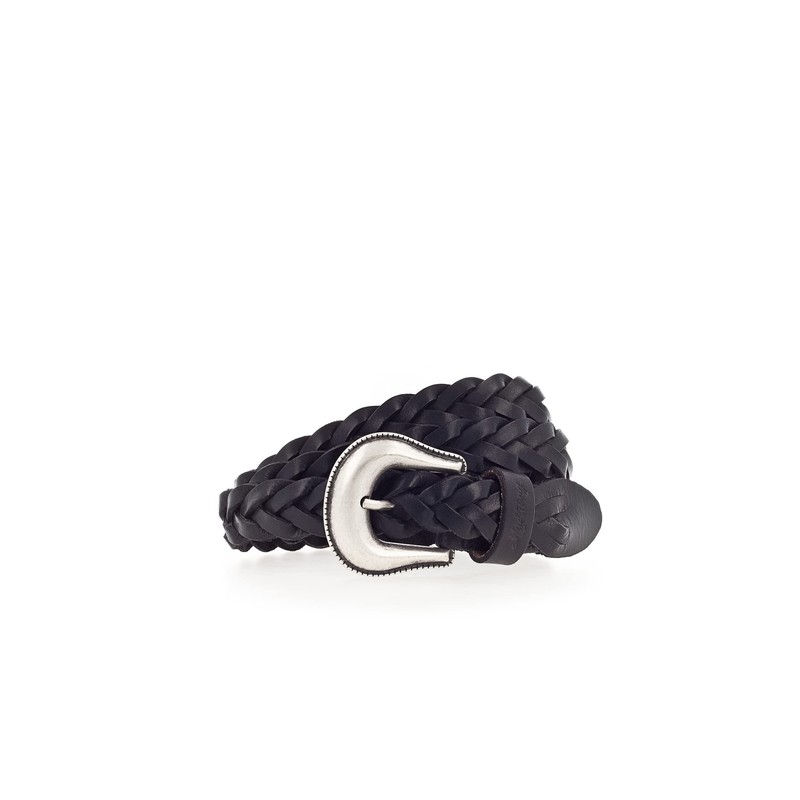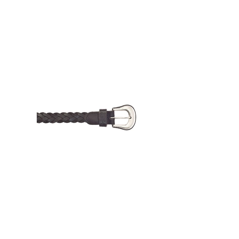 MUSTANG Braided 25mm Leather Belt with Polished Silver Clasp, black