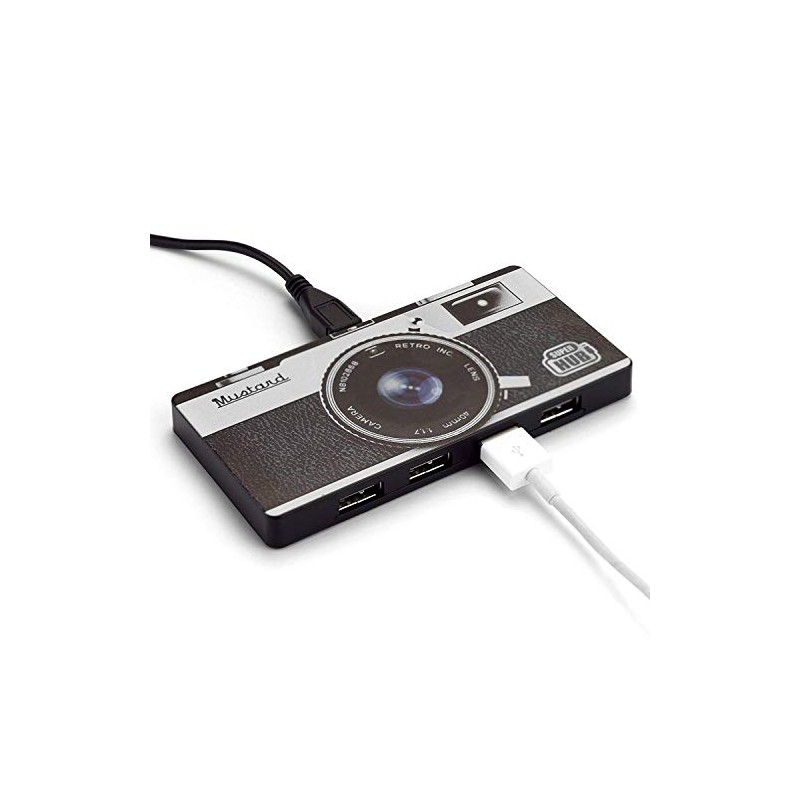 MUSTARD - Super Hub Camera I USB 2.0 Hub I 4-Port USB Hub I Plugable USB 2.0 4-Port High Speed Hub I Mac & Windows I Retro Camera Hub I Hub for any Device I Plug & Play Device I Retro Camera - 4 Port