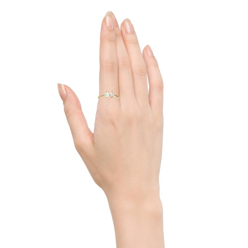 MUSTHAVE 18K Yellow Gold Plated Opal Square Cubic Ring, White Opal Ring, Adjustable Size, Stacking Ring