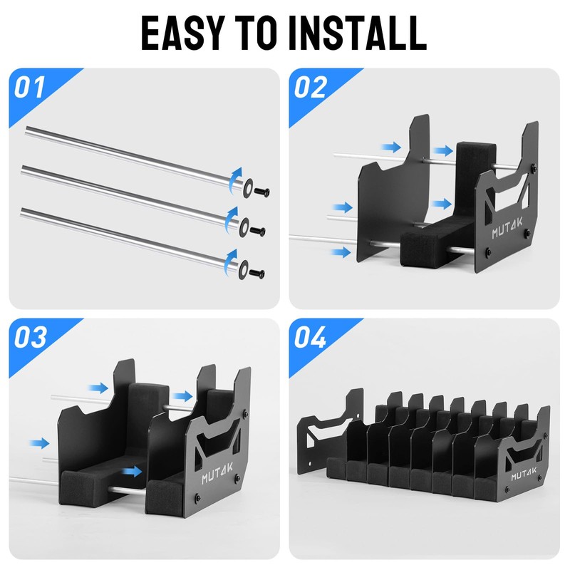 - Enhanced Stability: Different from other pistol racks that use double-sided tape for installation, our pistol rack features long metal rods and lightweight polymer panels, significantly improving the overall stability of the structure. Simply use the included Allen wrench to secure the screws on one end of the metal rod. Slide the polymer sheet and foam through the tie rod, then tighten the screw on the other end.