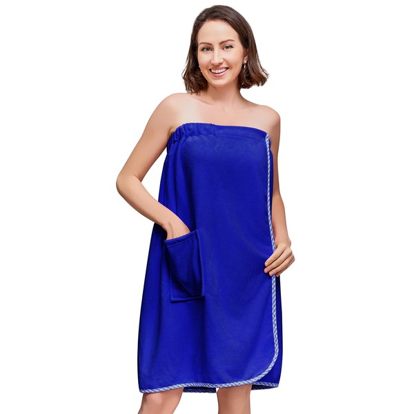 Mutenlc Women Bath Wrap towel robe after shower knee length spa robe for women (US, Alpha, X-Large-Dark blue)