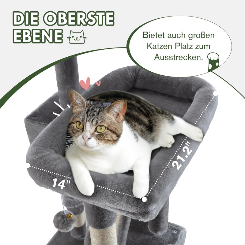 - Premium Material: The multilevel cat tree is crafted out of a CARB-certified P2-grade particle board and plush, the reinforcement posts are covered with natural sisal rope, so that cats can comfortably sharpen their claws instead of scratching the sofa