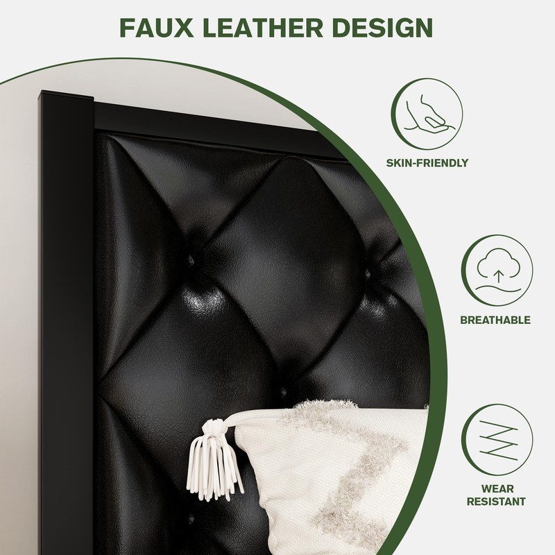 - Elegant Design, Timeless Charm: Featuring diamond decor and a leather upholstered headboard, this bed frame combines modern design with classic allure.