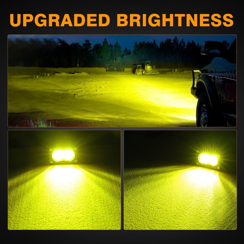 - EXCELLENT BRIGHTNESS : Diminutive in dimension, but dazzling in luminosity. Muto-Beam 3" Yellow Flood LED Pods powered by 40W high intensity LEDs, delivering 4,000 lumens of 3000K yellow illumination. With advanced optical design and unique PC lenses, they provide outstanding brightness and a wider field of view, banishing darkness from your path ahead. It is the perfect choice for fog lights and ensures your driving safety.