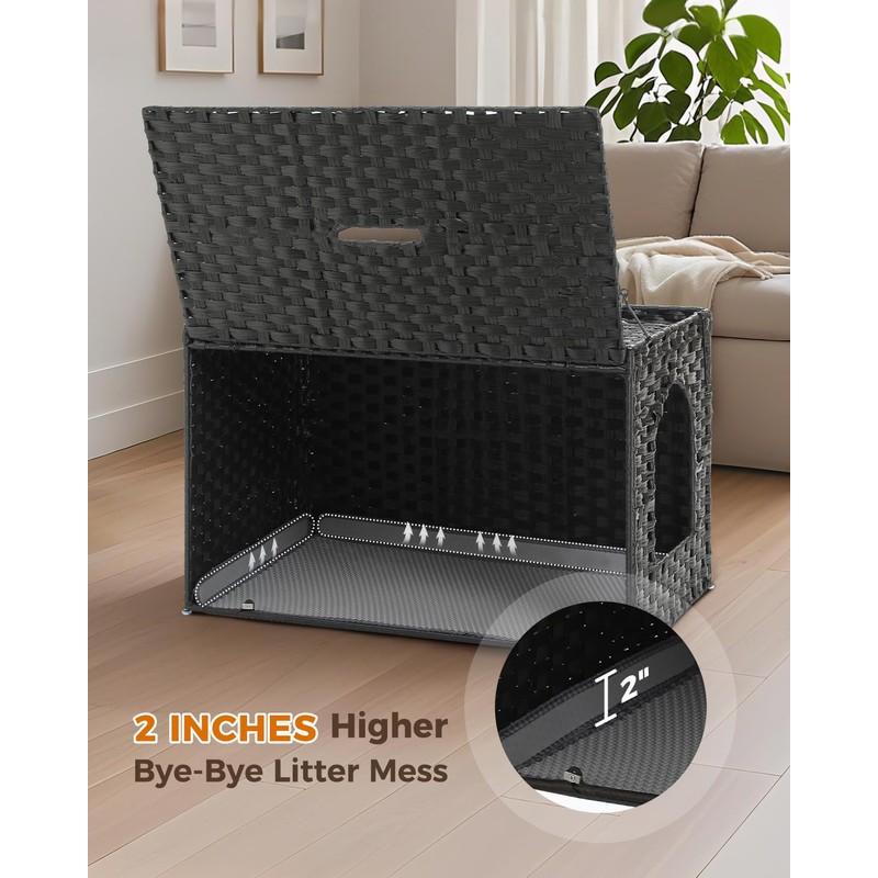 - Handwoven Rattan Craftsmanship: Each cat litter box enclosure is meticulously handwoven from PVC rattan that is waterproof, washable and sturdy, offering a unique and stylish addition to your home decor. Includes a removable washable litter mat, the natural texture not only enhances aesthetics but also provides a comfortable environment for your feline friend.