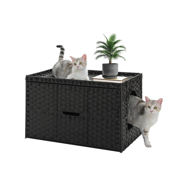 - Fast Build, Multi-Use Furniture: Effortless 5-Minute Assembly with Multifunctional Design Assemble your rattan cat litter box enclosure in just five minutes with the included step-by-step manual. Transform this litter box enclosure furniture into a cat bed, feeding station (the top supports 44 pounds), or side table! Neutral rattan finish complements boho, farmhouse, or contemporary decor.