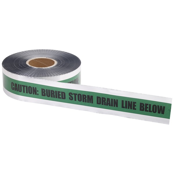 Mutual 17774 Polyethylene Underground Storm Drain Detectable Marking Tape, 1000' Length x 3" Width, Green