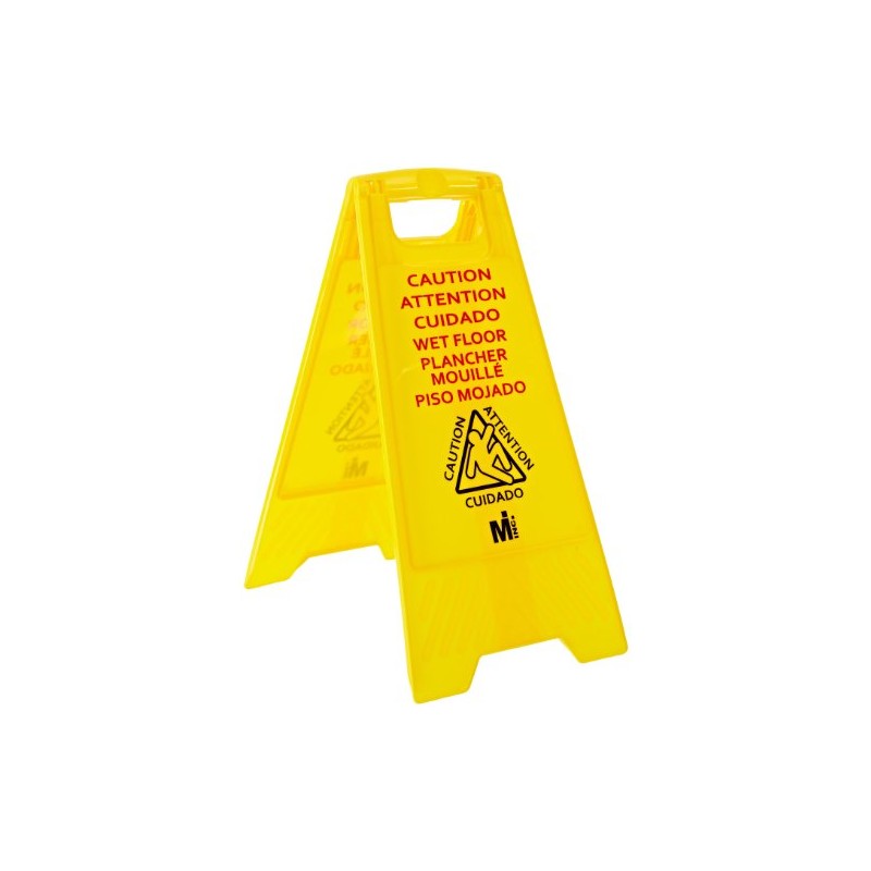 Mutual Industries 14663 Polyethylene Bilingual Industrial Floor Sign with Picto, Legend "CAUTION WET FLOOR", Black on Yellow
