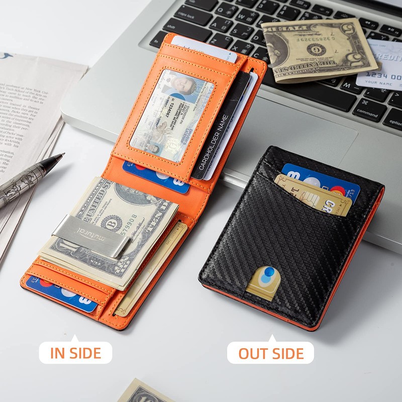 • 【Stylish Men's Wallet with Money Clip】The classic Carbon black wallets for men are noble and stylish, which is an ideal choice for men. It can be stored in the front of the pocket, making it more convenient for you to access. The mens wallet comes with stainless steel money clip for holding change to prevent it from being lost.