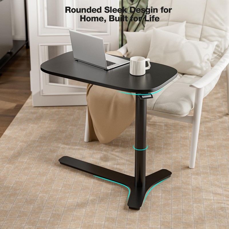 - 【Instant Sit-to-Stand】:our adjustable bedside table with wheels can be Easily transition between sitting and standing with the pneumatic lift,With an adjustable height range from 28.3 inches to 42.5 inches, promoting better posture and comfort during meals, reading or working on your laptop.